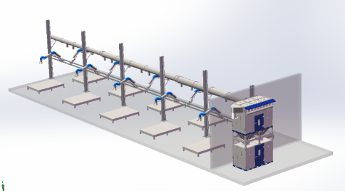 在涂裝生產(chǎn)線現(xiàn)場(chǎng)分散布置有5套廢溶劑收集裝置,1套分布于中涂線(包括8臺(tái)機(jī)器人和10個(gè)手工噴漆點(diǎn)),2套分布于面漆色漆線(包括8臺(tái)機(jī)器人和16個(gè)手工噴漆點(diǎn))
